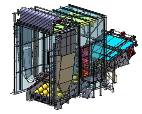 This Plant is mostly designed for conveying of various alternative fuel types (i.e. refuse derived fuel types) to combustion processes or storehouses. The MultiDock Plant consists of a five-screw conveyor, which conveys the material further in the direction of transport equipment (i.e. vehicle) unloading. To prevent any dust level, the conveyor inlet is fitted with a cover box for the whole unloading area of the semitrailer. To minimize dust levels, the box is equipped with a number of sealing components around the semitrailer. Another section of the conveyor is already fully closed. It is assumed that the downstream technological equipment is a chain conveyor or a belt conveyor. Opening, cleaning and closing of the transport vehicle are carried out from the box inside area, from a moving walkway platform. In this arrangement the surroundings of the station is protected from excessive dust pollution.